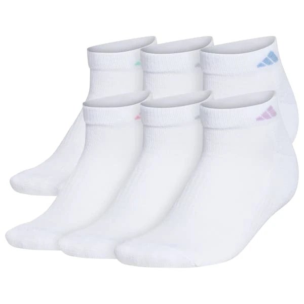 The adidas Women`s Athletic Cushioned Low Cut Socks offer comfort and durability with moisture-wicking material to keep your feet dry.