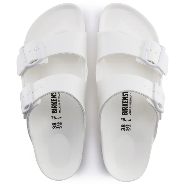 The legendary two-strap design from BIRKENSTOCK – the Arizona. Modeled on the cork original, this sandal is made from ultra lightweight and highly flexible EVA. These sandals are shock absorbing, waterproof, and skin-friendly. Wear them at the beach, in the garden, or around the gym and after workouts. It’s the perfect addition to your classic BIRKENSTOCK sandals.